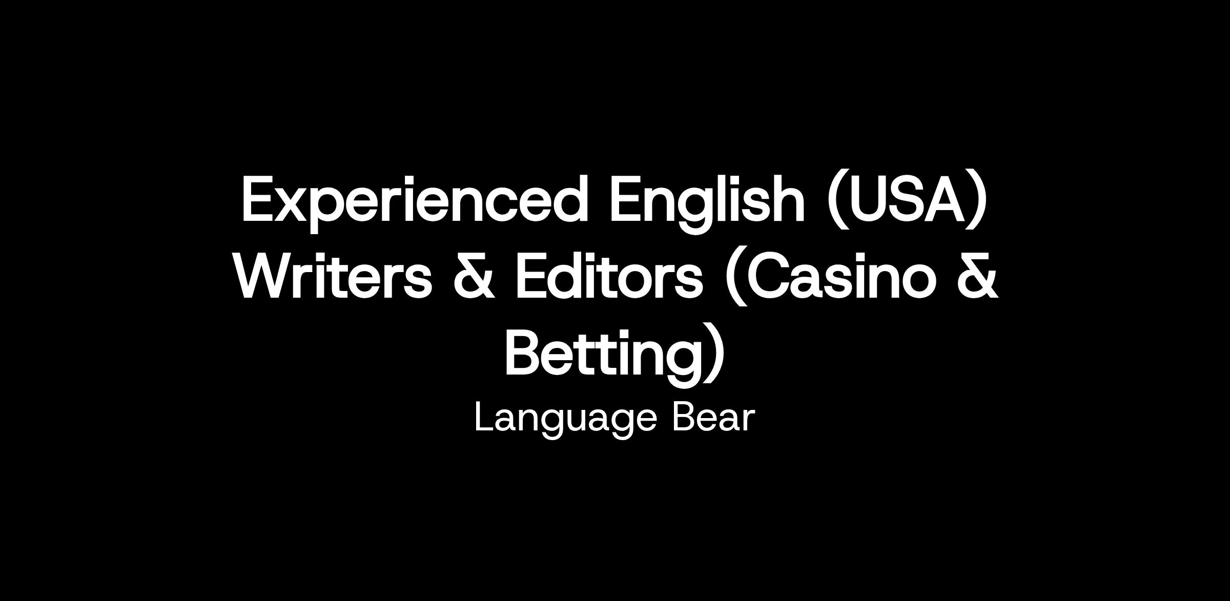 Native English (USA) Editors and Content Writers (Casino & Betting).